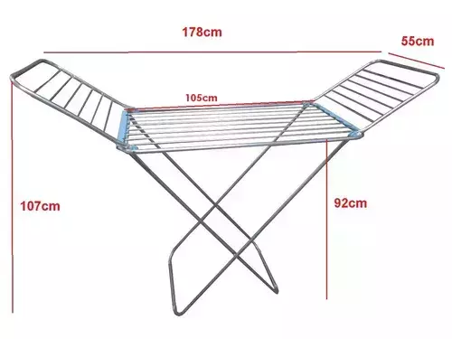 • Altura del tender desplegado 92cm la parte mas baja y 107cm la parte de las alas